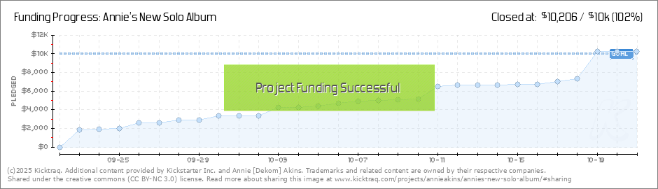 Help your backers reach your daily goals and help others see how you're doing. It's easy, with Kicktraq Mini.Here are a few quick snippits of code you can use to embed your personalized widget on your website, in your blog, and even on your favorite forum.
