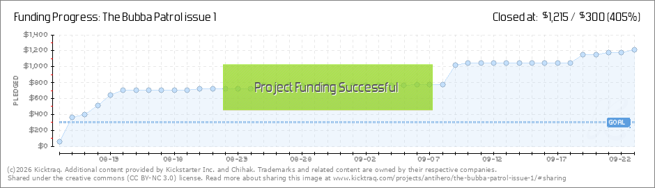 You'll need an HTML5 capable browser to see this content. Play Replay with sound Play with sound 00:00 00:00 Yes, the Bubba Patrol issue 1 will have a pull out poster, which will also be printed on newsprint paper. When we reach $1,000 that poster... (Read More)