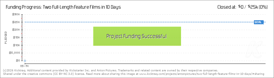 Two full-length feature films to be completed in 10 shooting days. Once completed, they will be posted for free on Anton Pictures