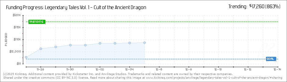 Help your backers reach your daily goals and help others see how you're doing. It's easy, with Kicktraq Mini.Here are a few quick snippits of code you can use to embed your personalized widget on your website, in your blog, and even on your favorite forum.