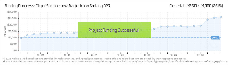 Thanks so much to everyone who's contributed so far! I've added a stretch goal to the project! $1600: More Art! I love Jacob Blackmon's art, and I'd love to have him take on the new archetypes in the City of Solstice. If the book reaches $1600 in... (Read More)