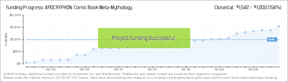 We're off to a great start, about three-quarters funded with about half our time still left. Thanks so much for your support! Here's the new wraparound cover for the collected edition of APOCRYPHON, containing all three chapters, 100+ full-color... (Read More)