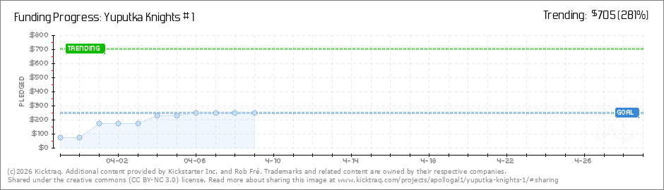 Help your backers reach your daily goals and help others see how you're doing. It's easy, with Kicktraq Mini.Here are a few quick snippits of code you can use to embed your personalized widget on your website, in your blog, and even on your favorite forum.