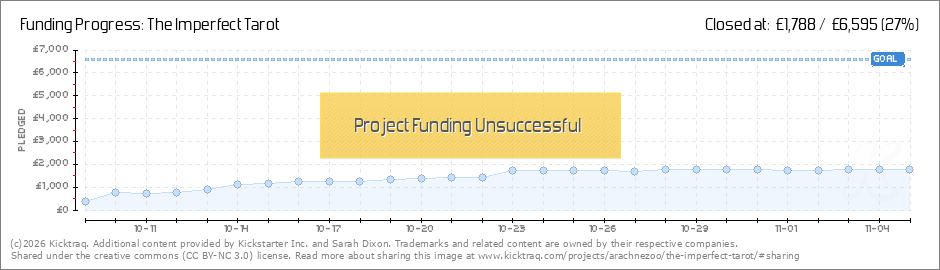 Hey everyone, thanks for your pledges and shares, which all are making the imperfect creep closer to reality... I have added some new rewards, one is a full set of art prints of all the Major cards, and the other major one is for an organisation to... (Read More)