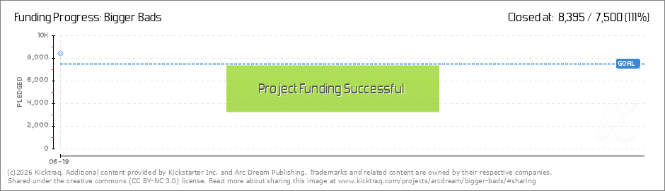 We're serious about wanting to see Bigger Bads succeed! If there's any doubt, we have added another two new rewards: If you're in the U.S. and you support Bigger Bads for $35, you get Bigger Bads in print, Bigger Bads in PDF, and a copy of the... (Read More)