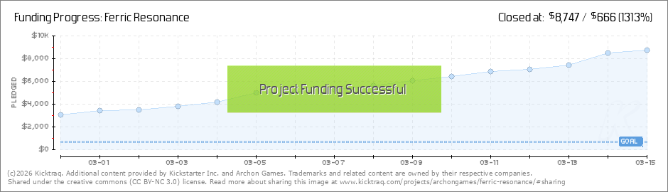 Thanks to your infernal ZEAL, the Ferric Resonance campaign has successfully been funded within minutes of launch! We very much look forward to sharing this dread fantasy adventure with you all. Your support is endlessly appreciated! Hails to you! ... (Read More)