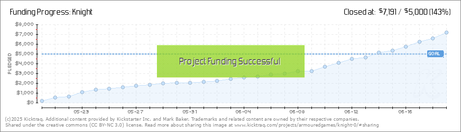 Hail and well met, Knights! At 130% funded and with 191 backers, KNIGHT is a success! But can we turn a success into an incredible success? Tell your friends, consider upping your pledge, and boost KNIGHT on social media! Follow Me! Armoured Gaming... (Read More)