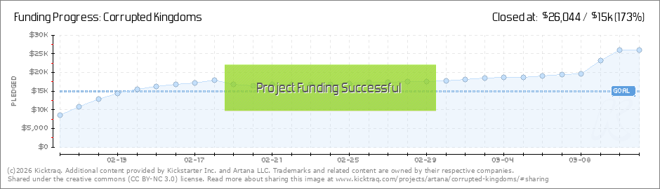 Hello Backers, Thanks for joining us in bringing Corrupted Kingdoms to the world! We are so thankful to each of you and your contribution to our first day total of $8,490! We're more than halfway to our goal already. :-) So, with this strong start,... (Read More)