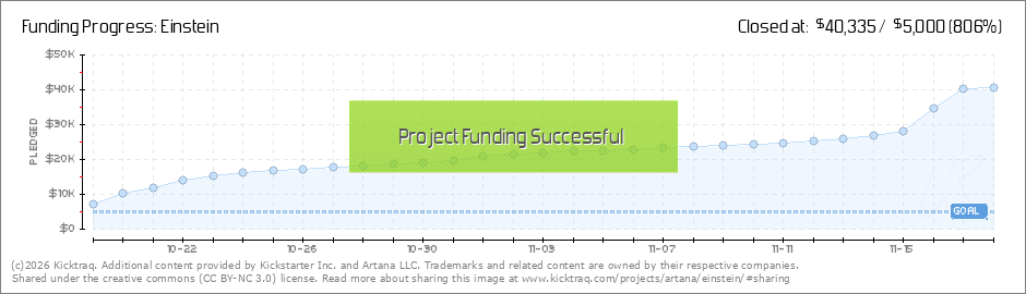 We did it! What a fantastic day thanks to all of you. Einstein lives again - at least on tabletop! We are so appreciative to everyone. This is the first update of what is sure to be many. For now, thank you for your faith in us and for... (Read More)