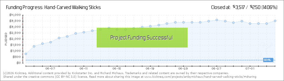 Kid-sized walking sticks being used by my eight, ten and twelve year old grandkids. Hi Backers! I have some new rewards that I hope you'll share with your friends. I've decided to make custom walking sticks in sizes that are perfect for kids to use.... (Read More)