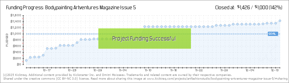 Hello everyone! Here’s a sneak peek into Issue #5 of the Bodypainting Artventures magazine coming out in Spring 2024. Our Kickstarter campaign to publish it is live for another 4 days (ends December 11th, 2023 at 5:09 PM EST):... (Read More)