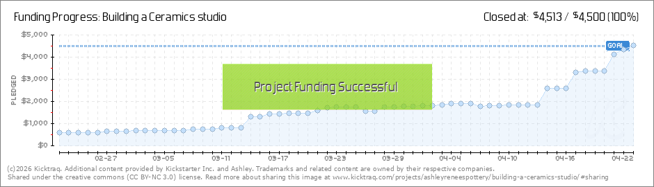 With just 7 hours left the campaign has reached it's goal and become successful! I am so grateful for all the support. As I continue will post updates once the kiln is ordered and on its way. I will also continue to share my work accross my social... (Read More)