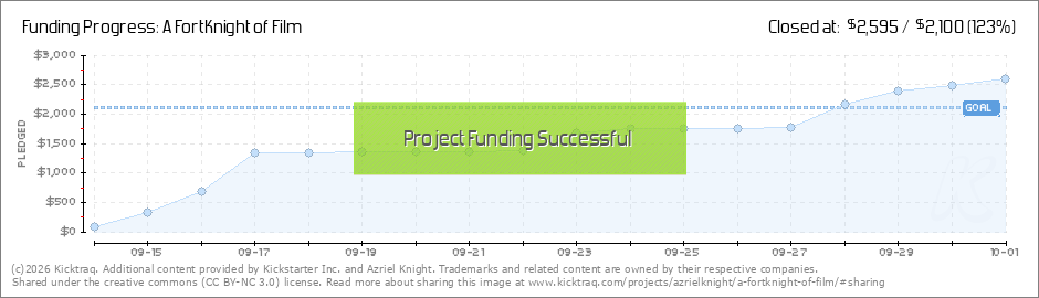 Hi Everyone! As of last night, I made my goal, and A FortKnight of Film is going to happen!! Looks like the demo video I released gave me the last push I needed, and then some. With about 50 hours to go there will be an additional day. I've had a few... (Read More)