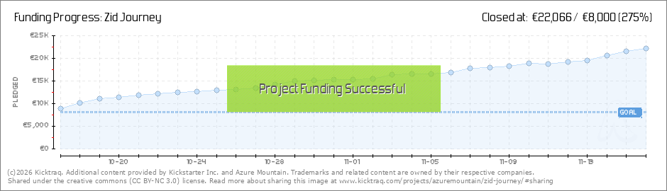 ..you! In fact you all are winners! Whew, well that was a wild ride! We did it, my friends... After a month on Kickstarter, Zid Journey managed to raise over €22k, which is 276% of its base goal. And we just couldn't be happier! Thank you so... (Read More)