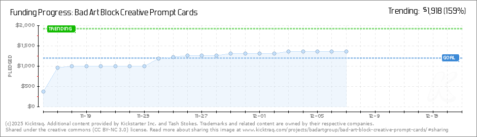 Help your backers reach your daily goals and help others see how you're doing. It's easy, with Kicktraq Mini.Here are a few quick snippits of code you can use to embed your personalized widget on your website, in your blog, and even on your favorite forum.