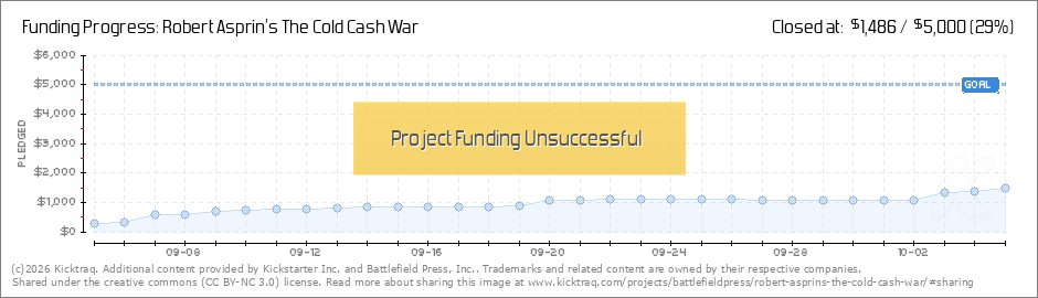 We did 5% in the first day, thats not really a bad number. I am happy with it. Not saying I wouldnt be happier with more, but we are on a steady track. The Asprin estate is excited about the possibility of a rpg for the Cold Cash War, and I am a fan... (Read More)
