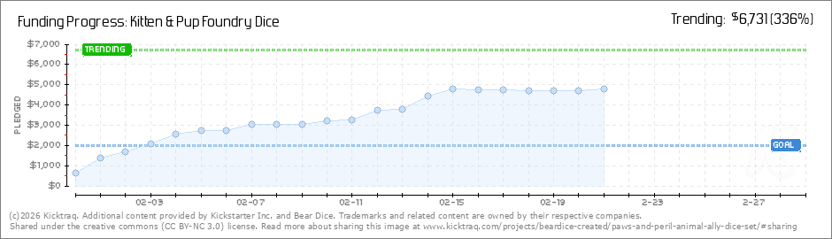 Dear amazing supporters, We did it! A heartfelt thank you to every friend who joined this adventure! It is your enthusiasm and support that have made it possible for Kitten & Pup Foundry Dice to now enter the production stage of our metal dice... (Read More)