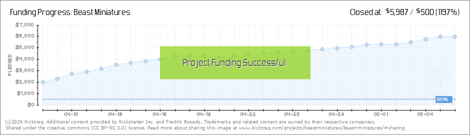 Thank you all so much, we reached and funded this Kickstarter! I'm super excited that so many of you have come on board and pledged for the Beast miniatures 3d prints and STL files! I'm currently working on some other things that will be available... (Read More)