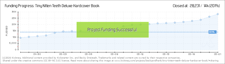 Help your backers reach your daily goals and help others see how you're doing. It's easy, with Kicktraq Mini.Here are a few quick snippits of code you can use to embed your personalized widget on your website, in your blog, and even on your favorite forum.