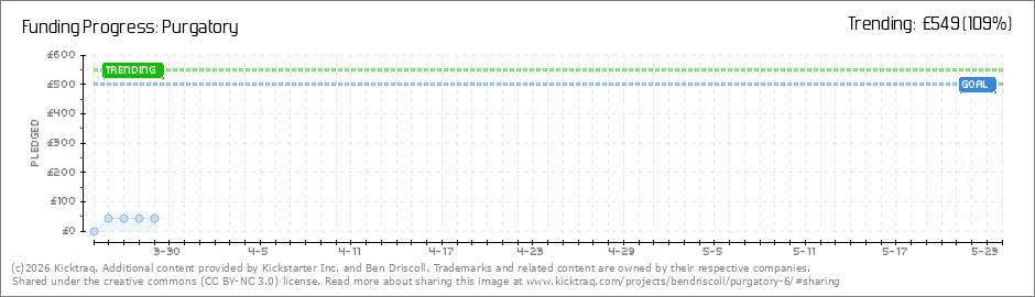 Help your backers reach your daily goals and help others see how you're doing. It's easy, with Kicktraq Mini.Here are a few quick snippits of code you can use to embed your personalized widget on your website, in your blog, and even on your favorite forum.