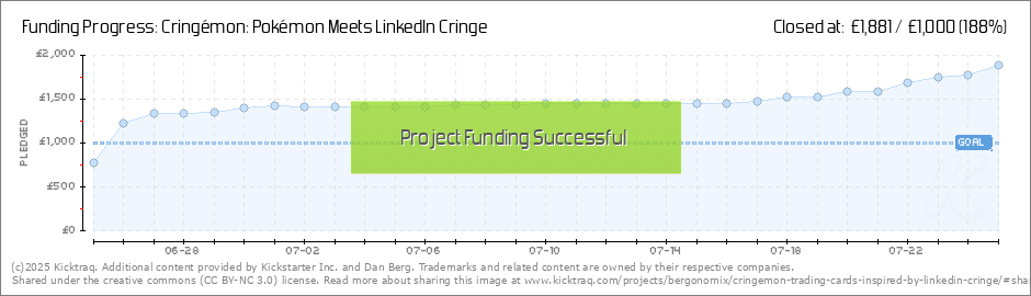 Hi gang, fun news: Cringemon has partnered with the Instragram account Best of Linkedin 🎉To celebrate, I've added new stretch goal... If we hit £3k - all the backers get to decide a new card 👀 It's totally doable. Please take a moment to share... (Read More)