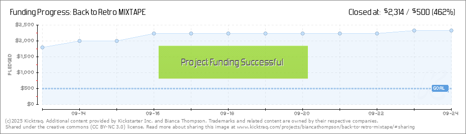 Help your backers reach your daily goals and help others see how you're doing. It's easy, with Kicktraq Mini.Here are a few quick snippits of code you can use to embed your personalized widget on your website, in your blog, and even on your favorite forum.