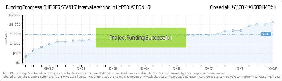 Thank you! We couldn’t have done it without your help. Now that we are funded we can start to announce some stretch goals. If we hit $1700 every print level package will get a trio of Big Blue Comics stickers featuring THE RESISTANTS’ Interval,... (Read More)