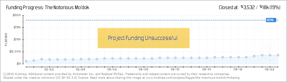 Hi Everyone, Just letting you all know that the campaign has been updated with The Notorious Mo'dok Art-Pack Tier! The Notorious Mo'dok Art-Pack is a collection of all the commissioned pieces printed on professional quality 130 lb paper.... (Read More)