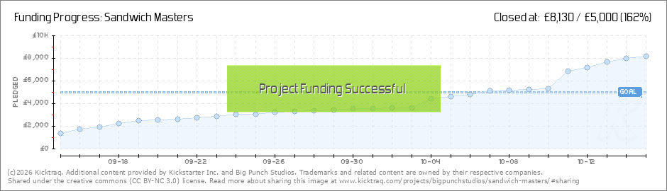 Hello sandwich lovers! Hey gang, a massive welcome and thanks to all new backers who have got behind Sandwich Masters in the last few days - not to mention our existing, wonderful supporters. Together, you've carried us to an incredible 121% of our... (Read More)