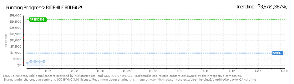 Help your backers reach your daily goals and help others see how you're doing. It's easy, with Kicktraq Mini.Here are a few quick snippits of code you can use to embed your personalized widget on your website, in your blog, and even on your favorite forum.