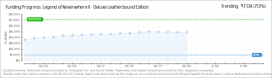 Help your backers reach your daily goals and help others see how you're doing. It's easy, with Kicktraq Mini.Here are a few quick snippits of code you can use to embed your personalized widget on your website, in your blog, and even on your favorite forum.