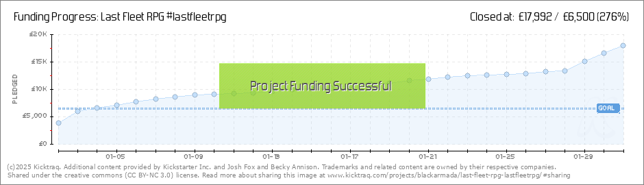 Hello everyone! We just reached the end of the first 24 hours of the Last Fleet campaign. One day in, there's just over 200 of you, and we're very nearly at £5000, which is a smidge over 75% funded. That's terrific progress, and all thanks to you... (Read More)