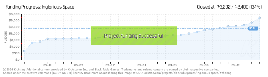 Inglorious Space Has Funded! Inglorious Space is successfully funded AND we hit our stretch goal thanks to all you ace pilots out there. We're so thankful for all your support. We couldn't have done it without you and we can't wait for you to play... (Read More)