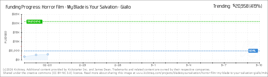 Help your backers reach your daily goals and help others see how you're doing. It's easy, with Kicktraq Mini.Here are a few quick snippits of code you can use to embed your personalized widget on your website, in your blog, and even on your favorite forum.