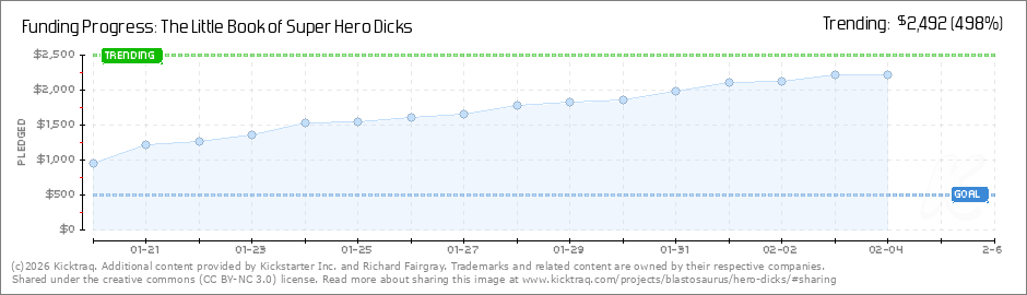 Help your backers reach your daily goals and help others see how you're doing. It's easy, with Kicktraq Mini.Here are a few quick snippits of code you can use to embed your personalized widget on your website, in your blog, and even on your favorite forum.