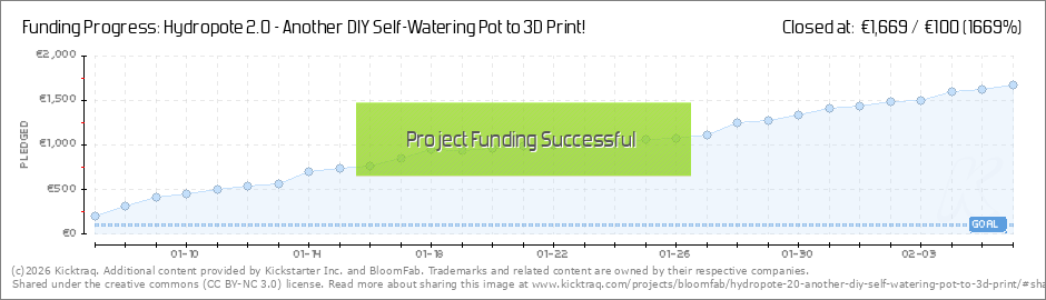 We did it!The first stretch goal with the mini version of the hydropote 2.0 is now available and we're already on our way to the second one!!! Thank you so much for your support on that new project!! BloomFab (Read More)