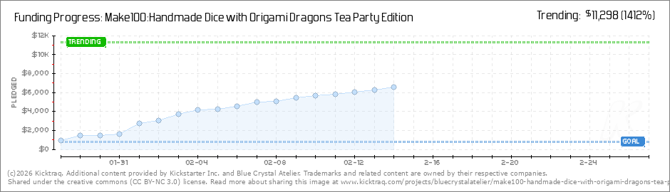 Help your backers reach your daily goals and help others see how you're doing. It's easy, with Kicktraq Mini.Here are a few quick snippits of code you can use to embed your personalized widget on your website, in your blog, and even on your favorite forum.