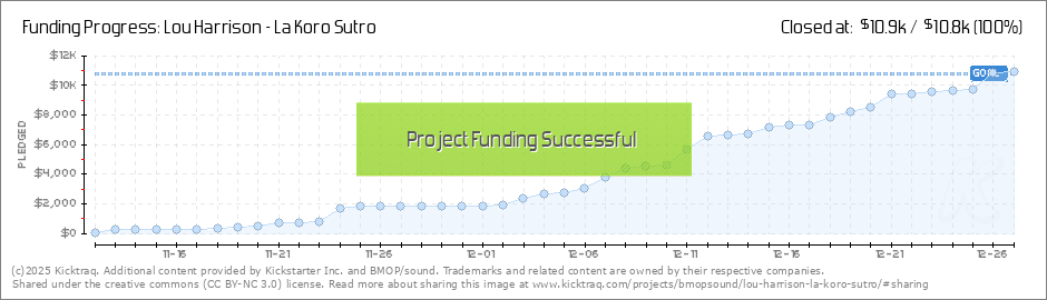 Help BMOP/sound fund the upcoming release of Lou Harrison's "La Koro Sutro" and "Suite for Violin and American Gamelan!"