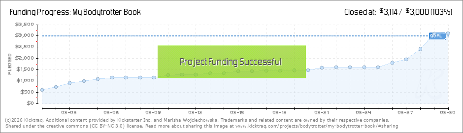 Wow, in just over 4 days since My Bodytrotter Book's campaign launched, we're already at a third of our objective! Thank you!! Merci à votre générosité et votre soutien! 24 days to go... Happy Bodytrotting, Marisha (Read More)