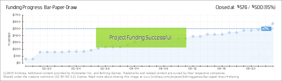 With just under 24 hours left, Bar-Paper-Draw is now fully funded. This is amazing! Thank you all. (Read More)