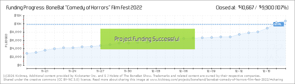 Good morning, Film fiends, and friends of the "Comedy of Horrors"! I wanted to drop you a brief note, as there are only a 5 days left to make the BoneBat "Comedy of Horrors" Film Fest happen in 2022. We had a huge day yesterday, and are currently... (Read More)