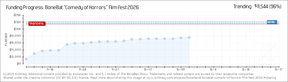 Greetings Film Fiends! The campaign for the 15th BoneBat "Comedy of Horrors" Film Fest has reached 60% of its goal! This is incredible news! And as such, we are thrilled to announce our artist for 2026! Everything is ready to go. All we need is your... (Read More)