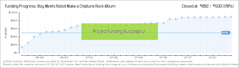 Just over a week into the Kickstarter campaign, and we've already hit the initial $500 funding goal! Thanks to all of your support, we'll definitely be releasing the album this fall. The total production costs of the album will be around $1500, and... (Read More)