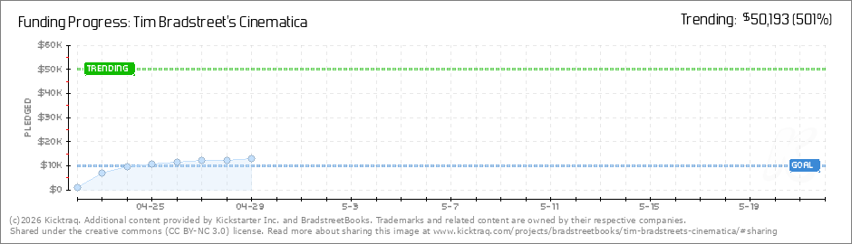Help your backers reach your daily goals and help others see how you're doing. It's easy, with Kicktraq Mini.Here are a few quick snippits of code you can use to embed your personalized widget on your website, in your blog, and even on your favorite forum.