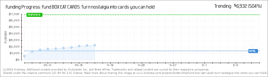 Help your backers reach your daily goals and help others see how you're doing. It's easy, with Kicktraq Mini.Here are a few quick snippits of code you can use to embed your personalized widget on your website, in your blog, and even on your favorite forum.