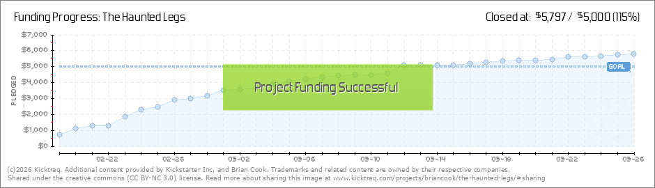 Here we GO! The fate of The Haunted Legs will be decided in the next 20 hours! Batten down the hatches and cross your fingers! A HUGE thanks to every single one of you backers! Without your help and support this wacky project never would... (Read More)