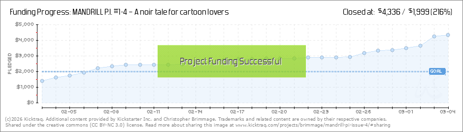 Hello again! MANDRILL P.I. is off to a fantastic start--thanks to you and your support! And now it's time to announce our first stretch goals: That's right! When we pass $2600, all physical backers will receive this issue's book mark depicting... (Read More)