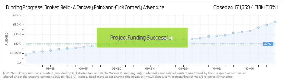 Hey everyone!Thanks again for backing Broken Relic! The campaign is going forward and I hope we can reach the main goal soon! Point and click adventures are a niche genre so it's quite hard to reach to our playerbase, so please if you can tweet... (Read More)