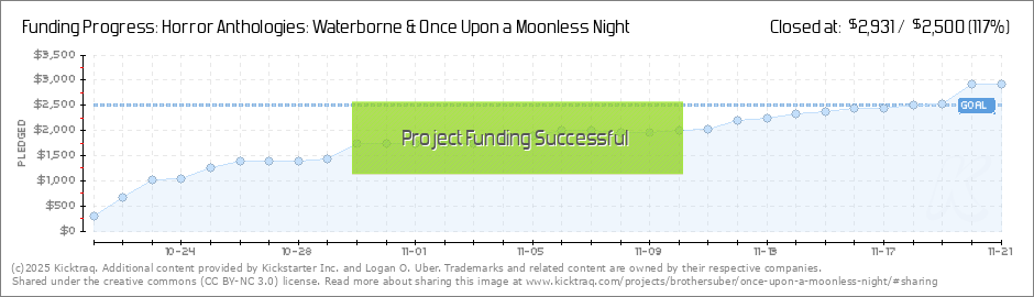 We're almost to the halfway mark and are closing in on our funding goal. Thank you for all of your support and sharing the campaign as we can't do this without you. Today's update includes 5 excerpts from Once Upon a Moonless Night: Tales of... (Read More)