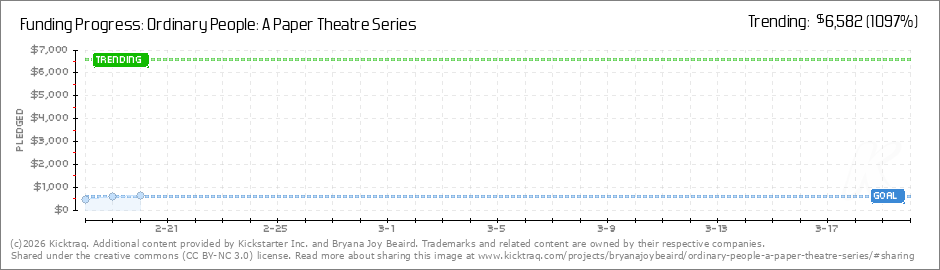 Help your backers reach your daily goals and help others see how you're doing. It's easy, with Kicktraq Mini.Here are a few quick snippits of code you can use to embed your personalized widget on your website, in your blog, and even on your favorite forum.